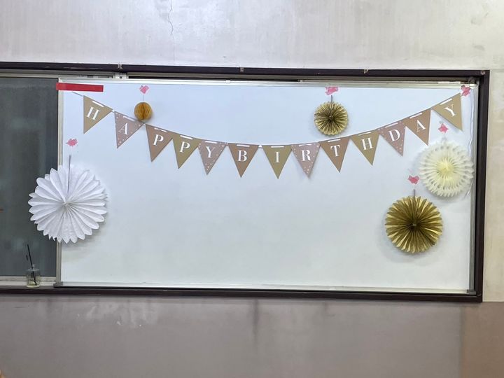 大きなホワイトボードがあったのでこちらに飾りつけしました♪