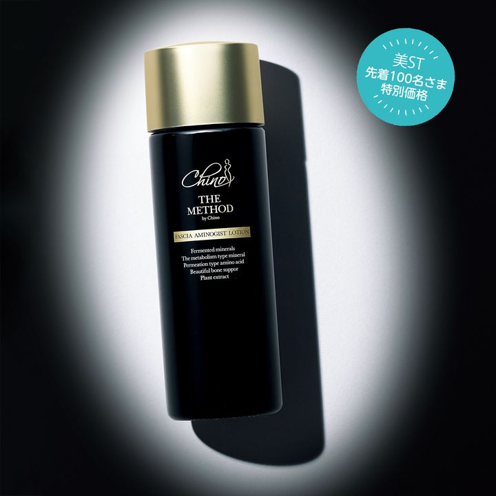 「Chino THE METHOD」とは、骨を本来の位置に整えて、筋肉のゆがみを解き、滞りをなくして柔軟性と可動域を広げ、理想のバランスに導くボディメイキング術。それをよりボディに定着させるようこのローションを作りました。単体での使用でも効果覿面ですよ。