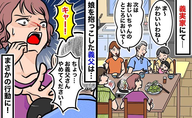 「キャー!お義父さんやめて~!」義実家での食事会。娘を抱っこした義父のまさかの行動に慌てた理由