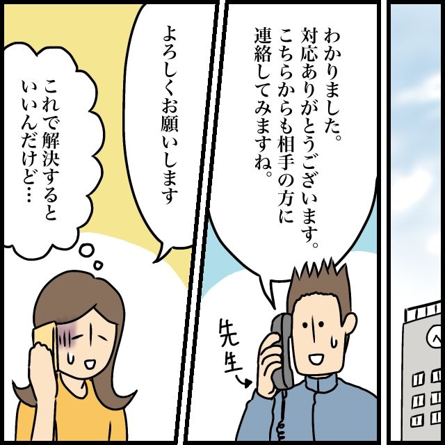 班長さんのママは、登校班で起きたことを先生に伝えつつ、