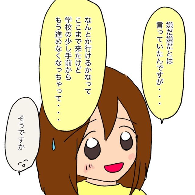 「嫌だ嫌だとは言っていたんですが・・・なんとか行けるかなってここまで来たけど、学校の少し手前からもう進めなくなっちゃって・・・」