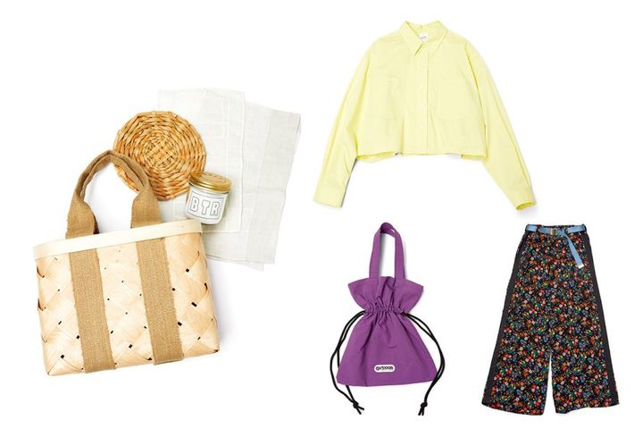 かごバッグ¥11,330、い草のマット¥2,090、BTRSALT(海塩)¥972、ポジャギ中¥6,600、ポジャギ小¥3,300/すべてBTR