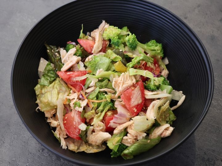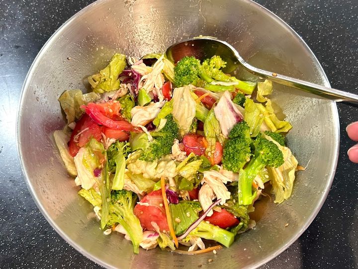 ②好きな野菜やササミとしっかり混ぜ合わせたら完成です。