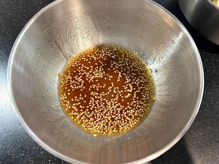 ②醤油・酒・みりん・コチュジャン・おろし生姜を混ぜ合わせておく。
