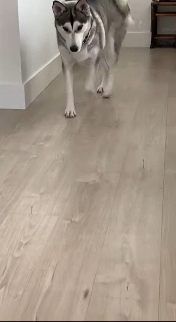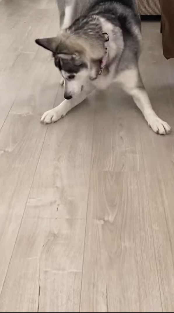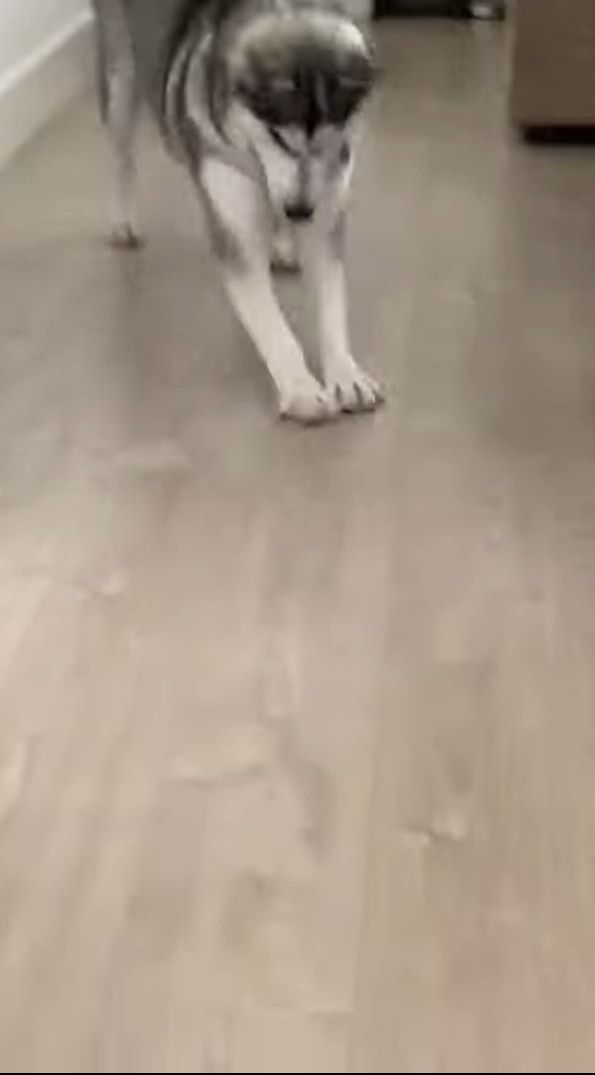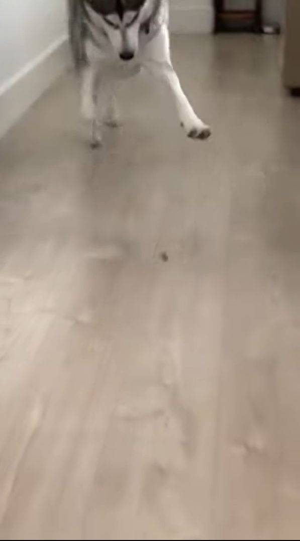 お家の中で遊ぶワンコに向けて、飼い主さんがおやつを投げると・・・