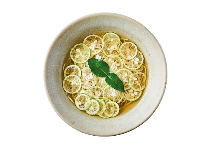 蕎麦打ちから器作りまで手がける美大出身店主の蕎麦屋に、友人の陶芸工房&体験教室を併設。自家挽きの蕎麦10に対しつなぎ1の“外一蕎麦”は、蕎麦の香りが鮮烈でつるりと快い口当たり。レモングラスやコブミカンで風味をつけてすだちをたっぷりと浮かべた出汁を飲み干せば、全身が涼感で満たされる。下京区本塩竈町533‐3 TEL:なし 11:30~15:00 水・木曜休 Instagram:sonobanosoba