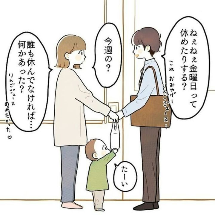 あや(@02117rin)さんの夫は仕事から帰るやいなや、「金曜日って休めたりする?」とあやさんに聞きます。「誰も休んでなければ…」と言うあやさんに、夫は「上から休みを取れと言われた」と話し、あやさんは買ったばかりのゲームをしてゆっくり休むようすすめます。しかし夫の考えはそうではないようで…?
