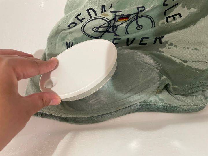 衣類が傷つかないように、軽い力でゆっくりと小さく円を描くように擦っていきます。