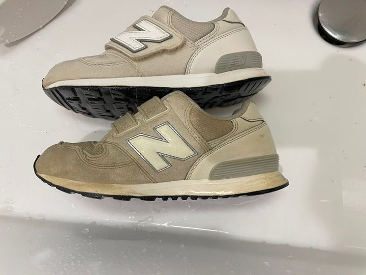 下の画像は、子どもが幼稚園で1週間履いたもの。しっかりと汚れた靴です(汗)。
