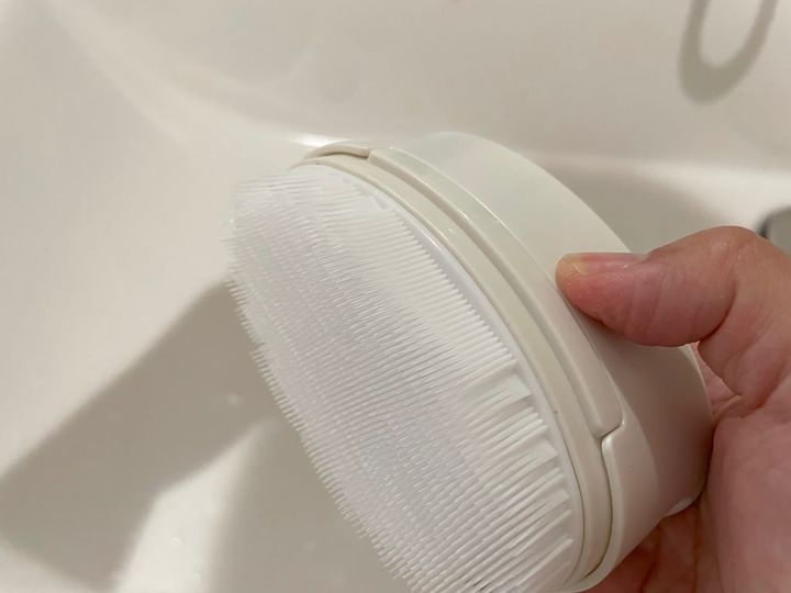 これだけではもちろん汚れは落ちないので、3COINSのシリコーンブラシで擦っていきます。