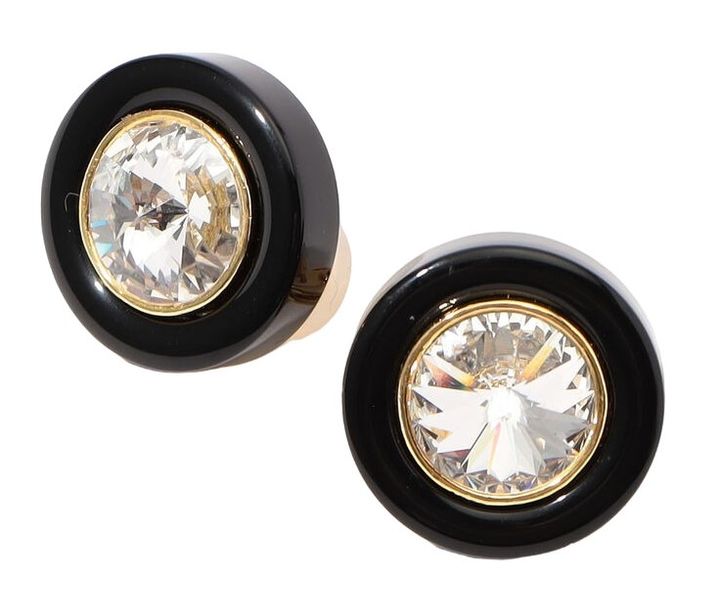 Elizabeth イヤリング/IRIS47 Tシャツやタンクなど軽いトップスにお似合いな、ヴィンテージジュエリーのような重厚感。黒とゴールドの好配色に、中央に透明感のあるガラスで優美な華やぎを。