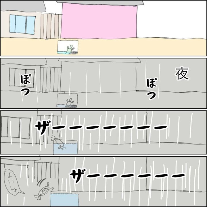 行方不明になっていたカメは無事見つかり、様子を見に行ってみると、思いがけず他のカメと一緒にすごしていたのでした。妹からの「友だちと楽しそうだね」という言葉に、学くんは何を思ったのでしょうか…。