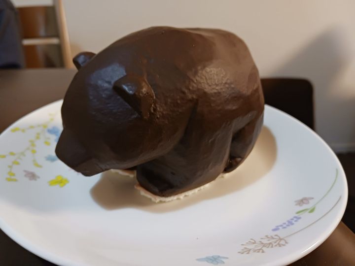 木彫りのクマ!(のチョコレート)。めちゃくちゃかわいくないですか。「これがトッパーとして載っているケーキなんて最高!」と思う方に、ぜひ読んでいただきたい記事です。