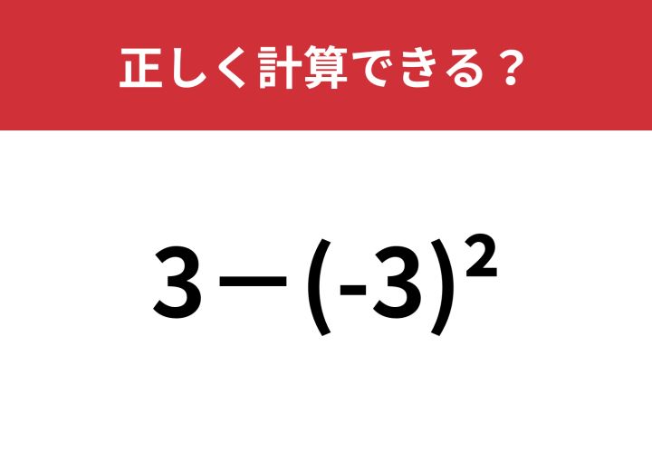 かっこの右上の数字の意味ってなんだっけ?「3−(-3)²」正しく計算できる?
