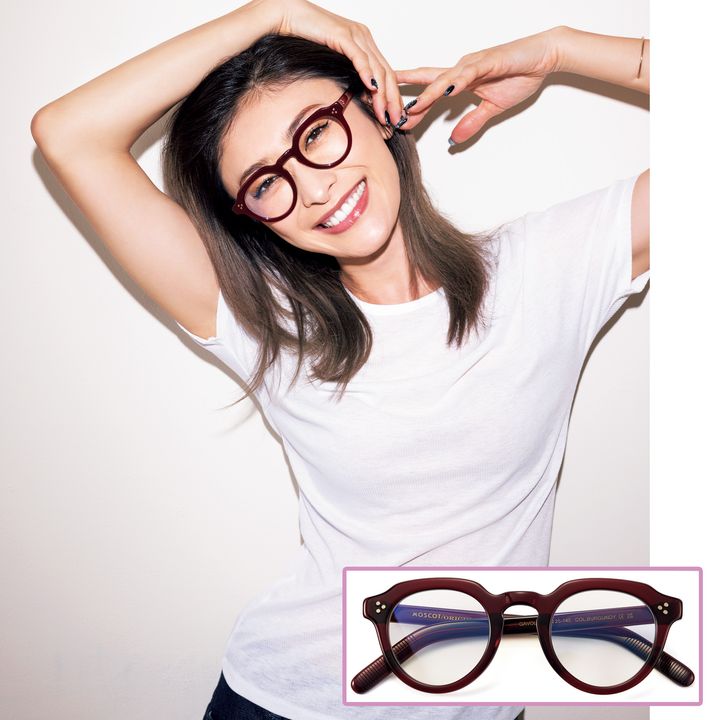 ひとつ持っていたいインパクトある太縁メガネは、顔のシワやシミをカムフラージュする効果も。[GAVOLT]フレーム価格¥47,300(モスコット/モスコット トウキョウ)
