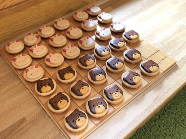 他にも色々と木のおもちゃがありました。クマとウサギのオセロ、可愛すぎませんか!?1歳の娘はまだオセロが出来ないので積み木にして遊んでいました。色々な形の積み木や音が鳴るおもちゃもありました。「年輪ドミノ」というおもちゃは、木のぬくもりを感じながら遊べます。