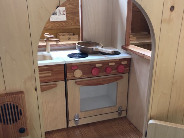 おままごとのお家の中にはキッチンもありました。子どもサイズの椅子やテーブルがあるのでおままごとが盛り上がること間違いなし!一緒に行った1歳の娘は、このお家が気に入って何度も出たり入ったりして楽しんでいました。屋根は光が入りやすいようになっているので、明るいお家の中で遊べます。ここで遊ぶ子どもが可愛すぎて、見ている大人も癒されます。
