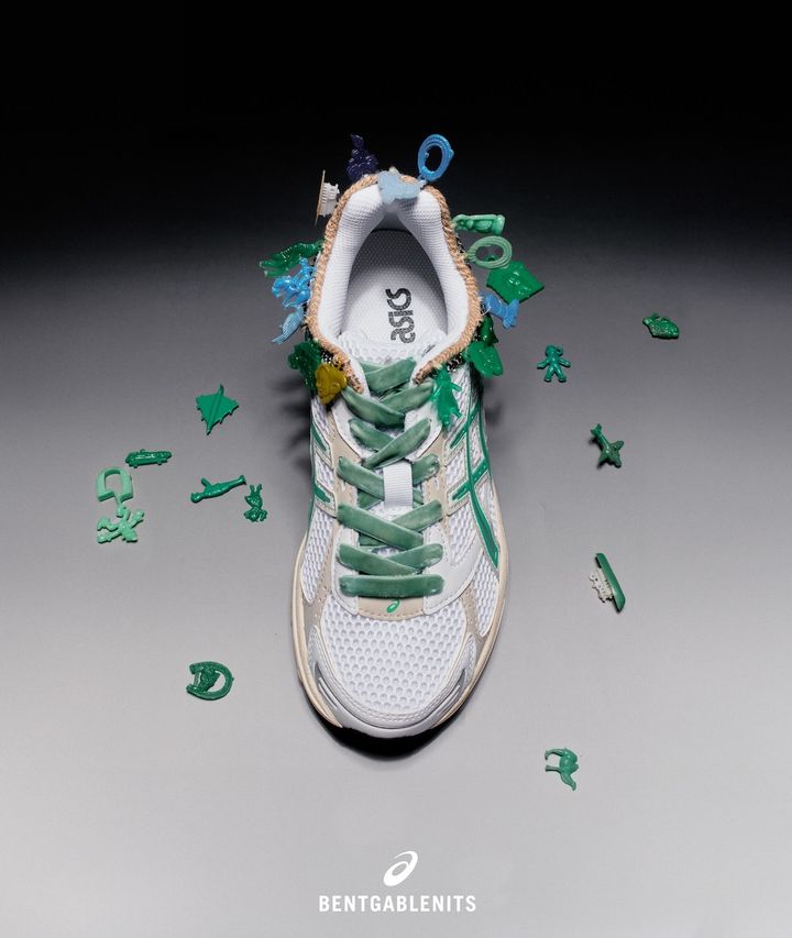 カナダ・トロントを拠点にゼロ・ウェイストに取り組む日本初上陸のブランド、ベントゲイブルニッツ (BENTGABLENITS)とアシックスASICS)のコラボレーションによる限定スニーカーがドーバー ストリート マーケット ギンザで7月20日(土)から発売する。