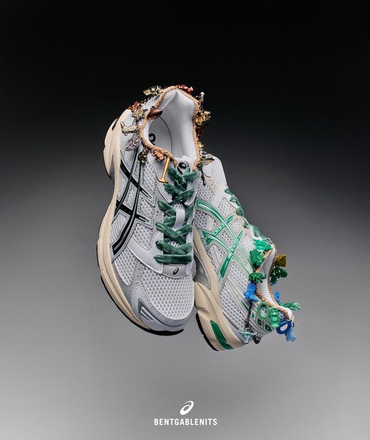 過去に、ナイキNIKE)やリーバイス®(LEVI'S®)バイレードBYREDO)などとのコラボレーションで世界的に注目を集めたベントゲイブルニッツ。今回の新プロジェクトは、デザイナーが長きに渡り収集してきた、ポップコーンのおまけ「クラッカージャックチャーム」が着想源で、装飾の中には75 年前に制作された貴重なピースも使用。同シューズは、アシックスに敬意を表し、“手に取る人がスニーカーのデザインをもっと近くで、じっくりと鑑賞してもらえれば”、という意図により、小さなチャームをデコレーションとして採用している。