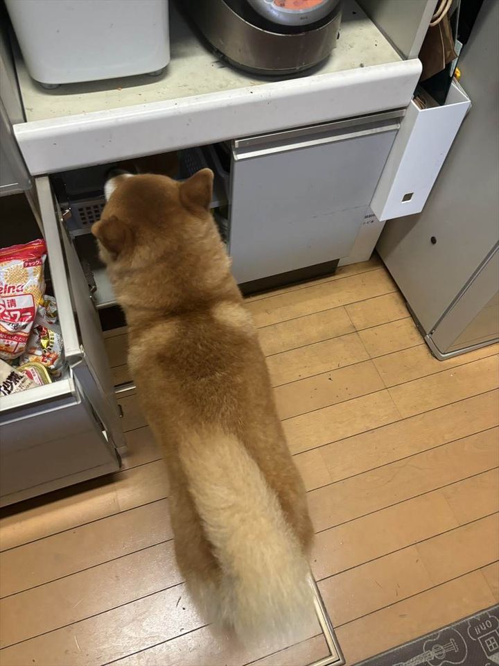 ご紹介するのは、こたろうくん(@kotaro_chang)さんがXに投稿された写真です。 雷の音を怖がり、柴犬の『小太郎』くんが狭いところを探していたのですが・・・