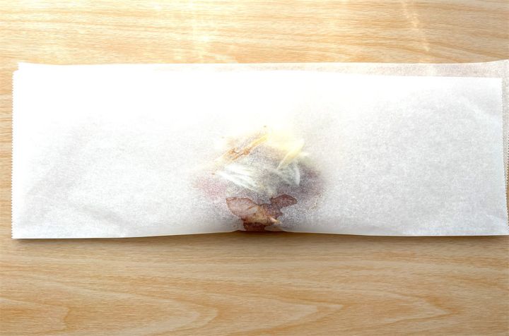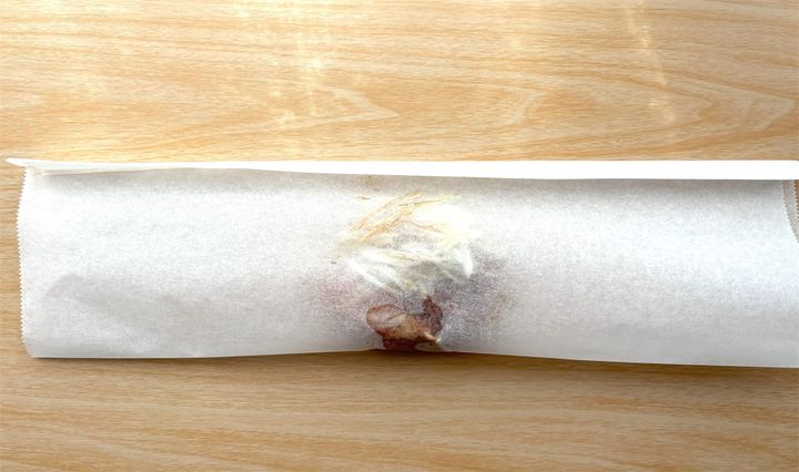 紙包みを開けると…ホカホカとっても良い香り~♪「ペーパーチキン」を実食!