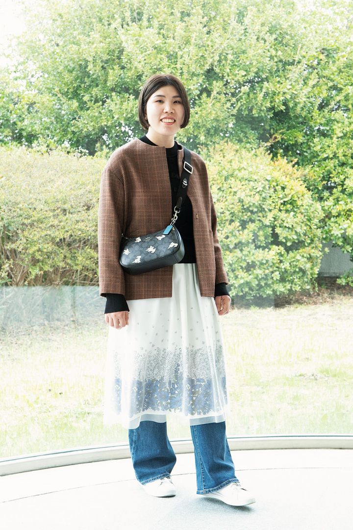 桜が見頃で春っぽい季節になってきたので、ピンクとベージュを中心に明るいコーデにしました。低身長なのでウエストマークで全身のバランスを意識しています!