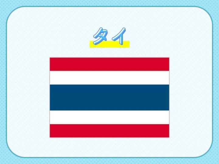 実はこの国旗になる前は赤地にこの国のシンボルである白い象が画かれていましたが、1910年に起こった国旗逆掲揚事件(国王のラーマ6世が洪水で被害を受けた地域を視察していた際、国旗が逆さまに掲揚されていた)をきっかけに、1917年、上下左右相称のトライロンガとよばれる3色旗が制定されたそう。ちなみに、象を描くのが難しいから簡単にしたという説もあるそうです。