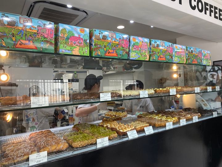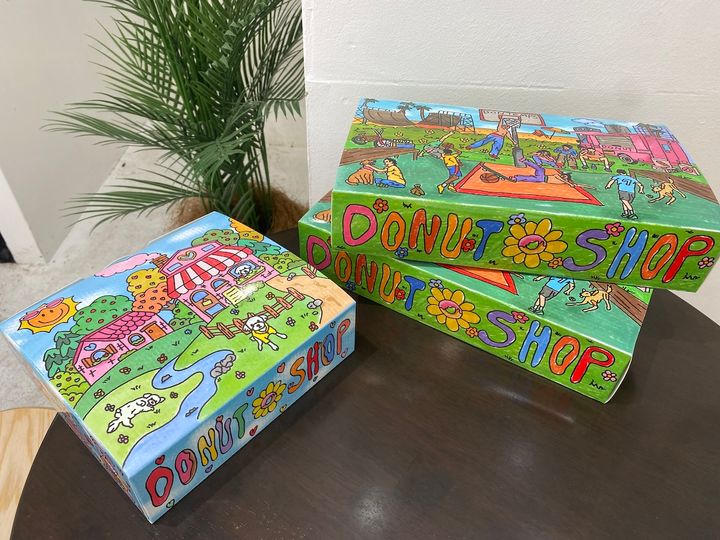 「BONTEMPS 中目黒店」ではイートインとテイクアウトができます。テイクアウトでは、ドーナツのイラストが描かれたオリジナルボックスに入れてお渡し。韓国の有名イラストレーターが「BONTEMPS」のためだけに描いており、数カ月に1度イラストが変わります。そのためボックスをコレクションするために足を運ぶお客さんもいるのだとか。ぜひ手に入れてみてくださいね!