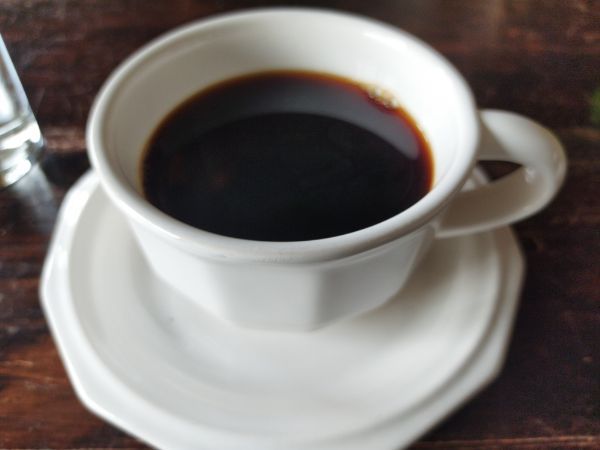 おお、なみなみと、そそがれた珈琲が嬉しい。ガラステーブルの下に、畳が見える、この昭和感がたまらないね。 豆は、コロンビア、「EL CEDRAL」という農園のもの、とのこと。