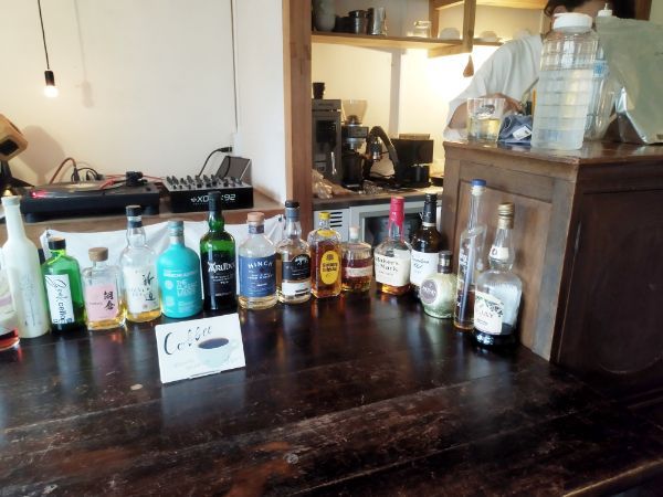 「喫茶アナログ研究室」さんとの違いは。カウンターにお酒が並ぶことかな。