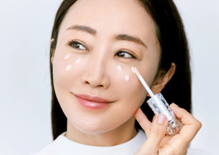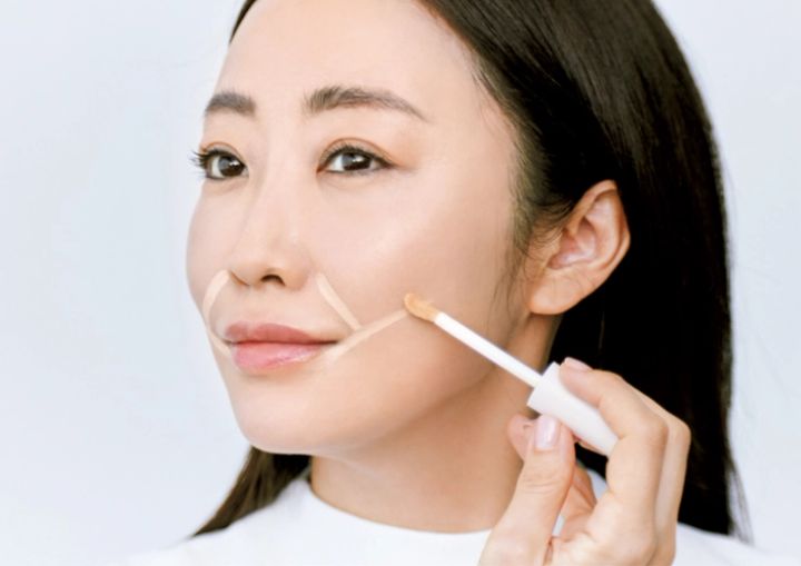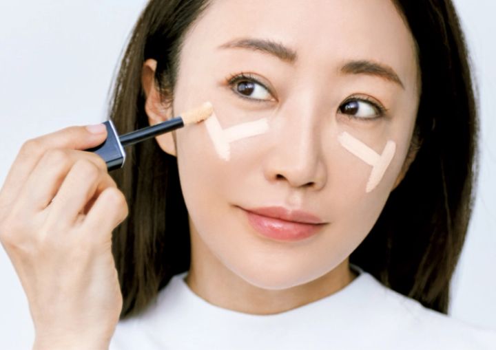 目の下の三角ゾーンに、肌よりワントーン明るいコンシーラーをタテとヨコに斜めに入れると、目元に明るさが溶け込んでくすみを飛ばしてくれます。