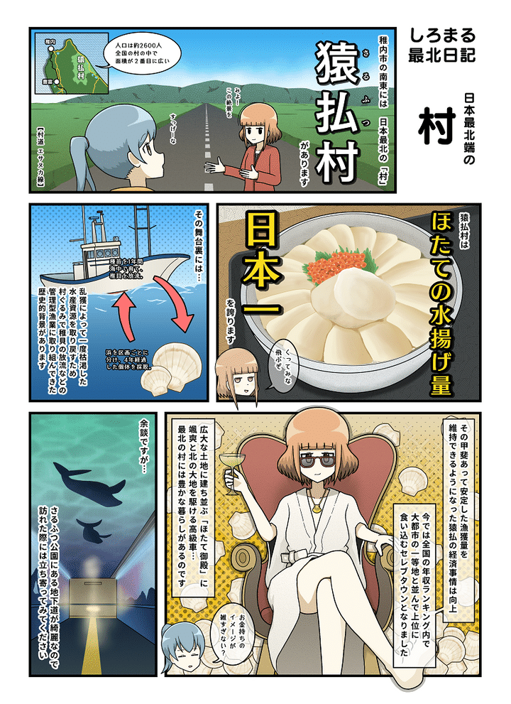 最北端の「ほたて御殿」や「温泉郷」って知ってる?全国各地から人が集まる理由とは|しろまる最北日記㉔【漫画】