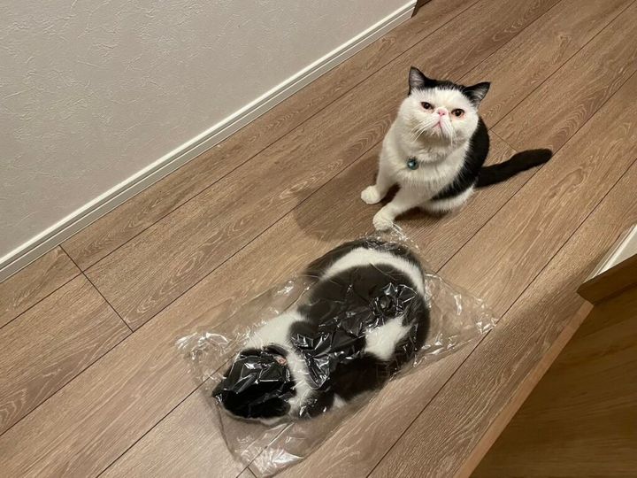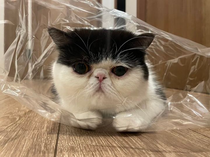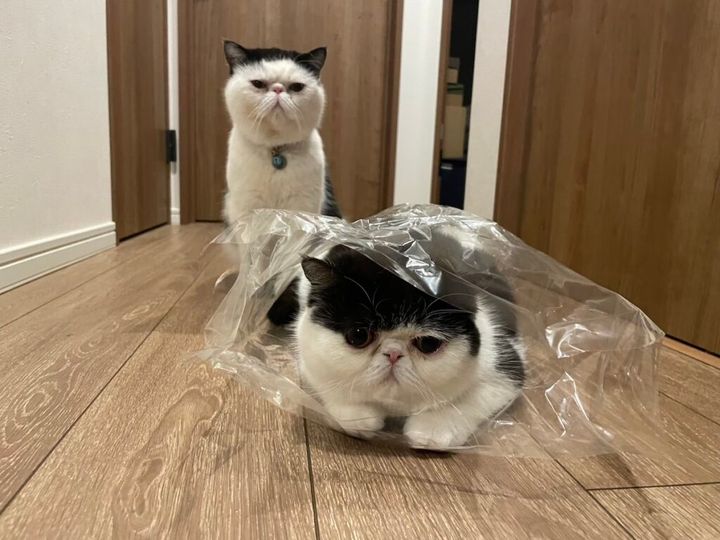 おちょこ「ちろり、何してるの?」 ちろり「カシャカシャする袋に入ってるの。なんか面白いよ、おとうちゃん」