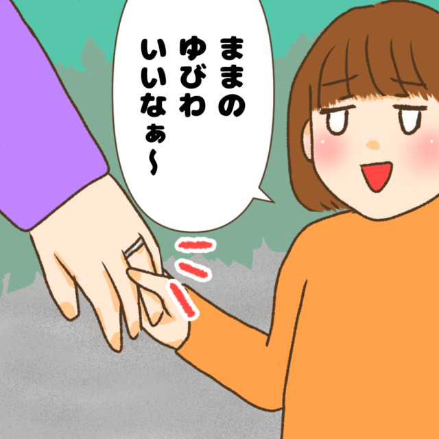7歳長女ちゃんと5歳次女ちゃん姉妹のママであるまみさんから、結婚指輪のお話です。あるとき、まみさんの指の結婚指輪を見た次女ちゃんが不思議なことを言い出して・・・。