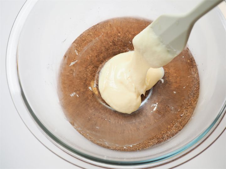 マヨネーズはそのまま入れるとダマになってしまうので、始めにのばしておくといいとのこと。ゆかりさんは水を3回に分けて入れていましたので同じようにしました。少量ずつしっかりなじませるようにのばしていきましょう。