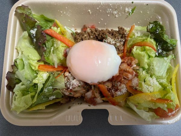 ランチボックスを開けると、彩りのよいタコライスがランチボックスに入っていました。レッドチェダ―チーズ・ゴーダチーズ・パルメザンチーズを使用した具材がたっぷり入ったタコライスは、甘辛でとても美味しかったです。これから暑い夏が続きますが、暑い夏にも食べたくなるタコライスでしたよ!!スプーン・おしぼり不要な方は、50円割引と環境に優しい取り組みもされていました。