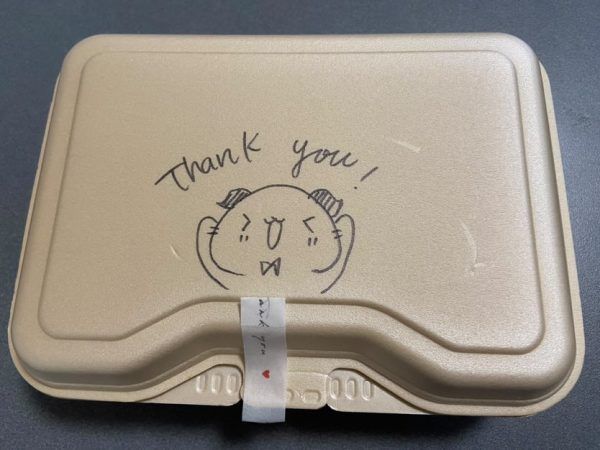 テイクアウトで3種チーズのタコライスを作っていただきました。注文してから作ってくれます。ランチボックスには、店員さんが可愛い絵を描いてくれました。