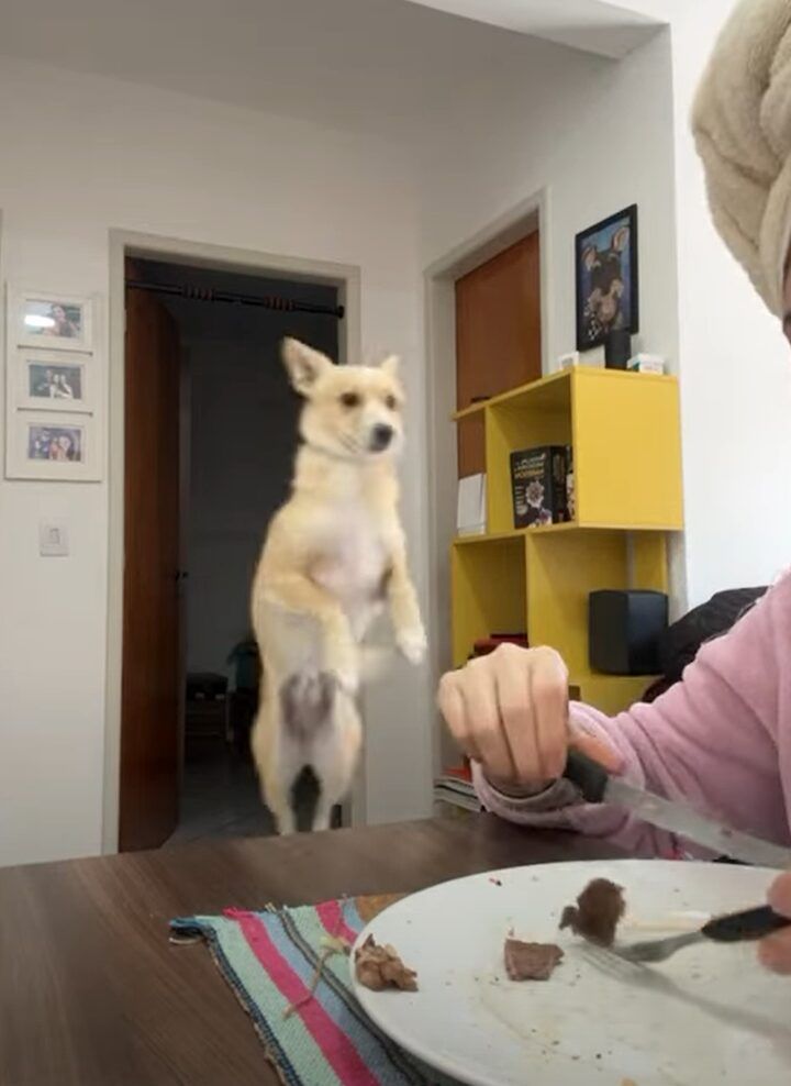 3. 「ちょーだい!ちょーだい!!」食事をしていると愛犬がピョン!何度も飛び跳ね猛アピール!!【海外・動画】