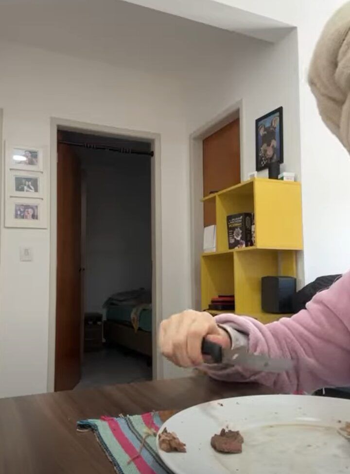 食事をしている女性。 そのすぐ横で、ぴょんぴょんと跳ねている愛犬の姿がありますが・・・。
