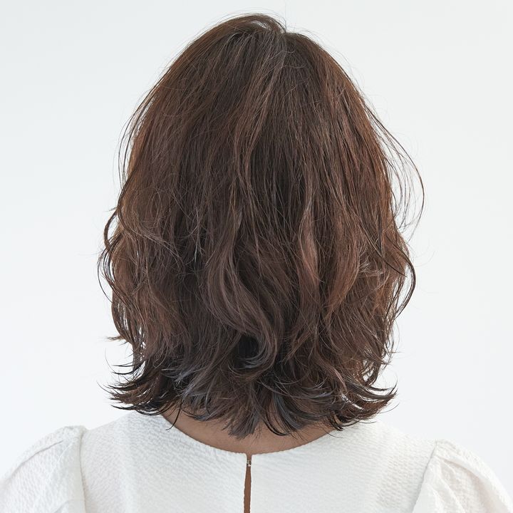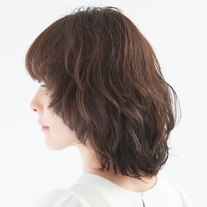 もともと細い髪質で、年齢とともにさらにコシがなくなっていくなら「レイヤーがたっぷり入ったマッシュボブ」に。動きのある毛流れとボリューム感を出すのがおすすめ。