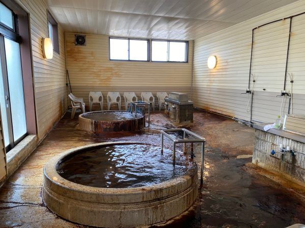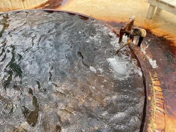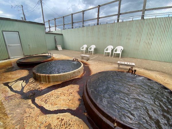 グツグツ、ド、ドーンと蛇口もぶるぶる揺れながら、湧き出る温泉の音が半端ない!周りにはリサイクル業者が立ち並んでいるため、夕方の訪問時は、スクラップする音が響いていて、不思議な音の共演でした。