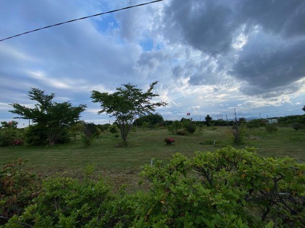大きな道路から1本入ると、草木が生い茂っていて迷いそうな道なりですが、西桔梗野球場をたよりにお進みください。向かいはパークゴルフ場となっています。