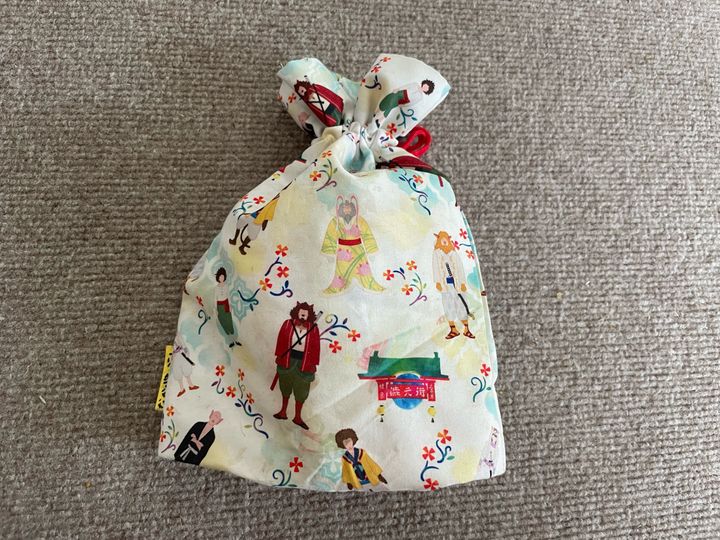 慌てて、近くにあった巾着を何も考えずに手に取り取りました。