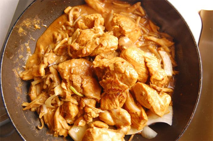 玉ねぎのほか、トマトやじゃがいも、ブロッコリーやにんじんなど、冷蔵庫にある野菜を入れてもOKとのこと。…って、それ、カレーじゃん(笑)。タンドリーチキンというより、インド風チキンカレーと表現する方が近いかも。まぁ、タンドリー“風“チキンということですからね(笑)。