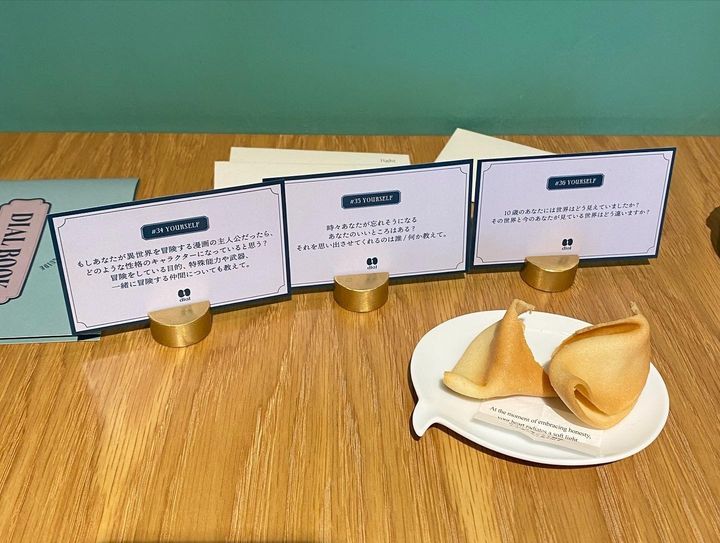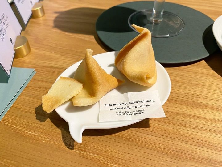 対話をしていると、フォーチュンクッキーが運ばれてきました。クッキーの中には哲学的な言葉が書かれていて、その意味を一緒に考えることで、さらに会話が生まれました。