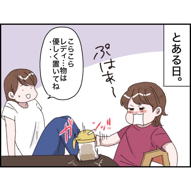 「こらこらレディ・・・物は優しく置いてね・・・」