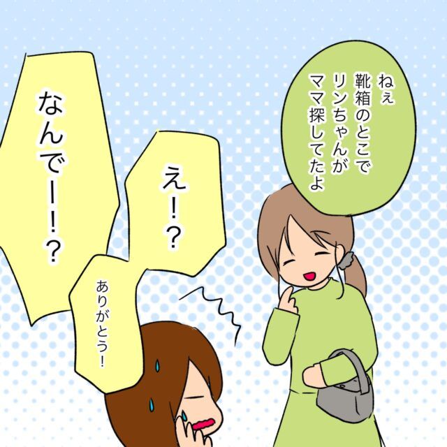 子どもの姿がなかったら驚いてしまいますね(汗)他のママさんが教えてくれてよかったです!