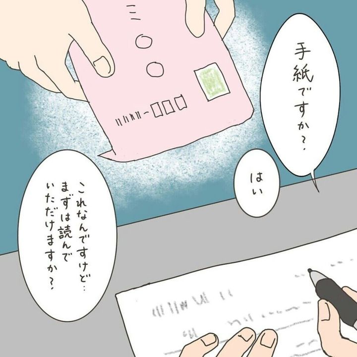 人違いで届いたであろう手紙に、身の危険を感じずにはいられなくなったMichika(@michika_haha)さん。同僚の後押しもあって、警察へ相談することに。まずは読んでもらおうと手紙を渡します。びっしりと思いが詰まったその手紙の量に、警官も驚きを隠せないようで…。「犯人の目的は?」完結編第7話です。
