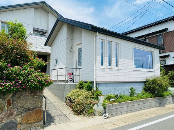 大島のフェリーターミナルから徒歩5分。 一般のご自宅のような佇まいの白いお家が「カフェ姫っこ」です。