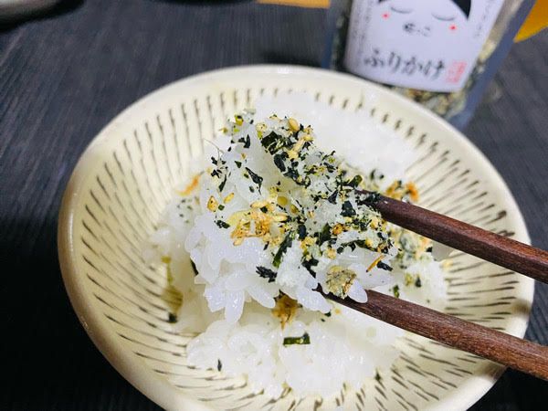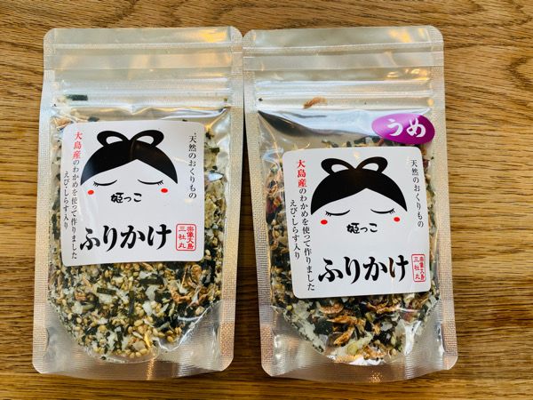 こちらが大島産のわかめを使ったふりかけ。エビとしらす入り。